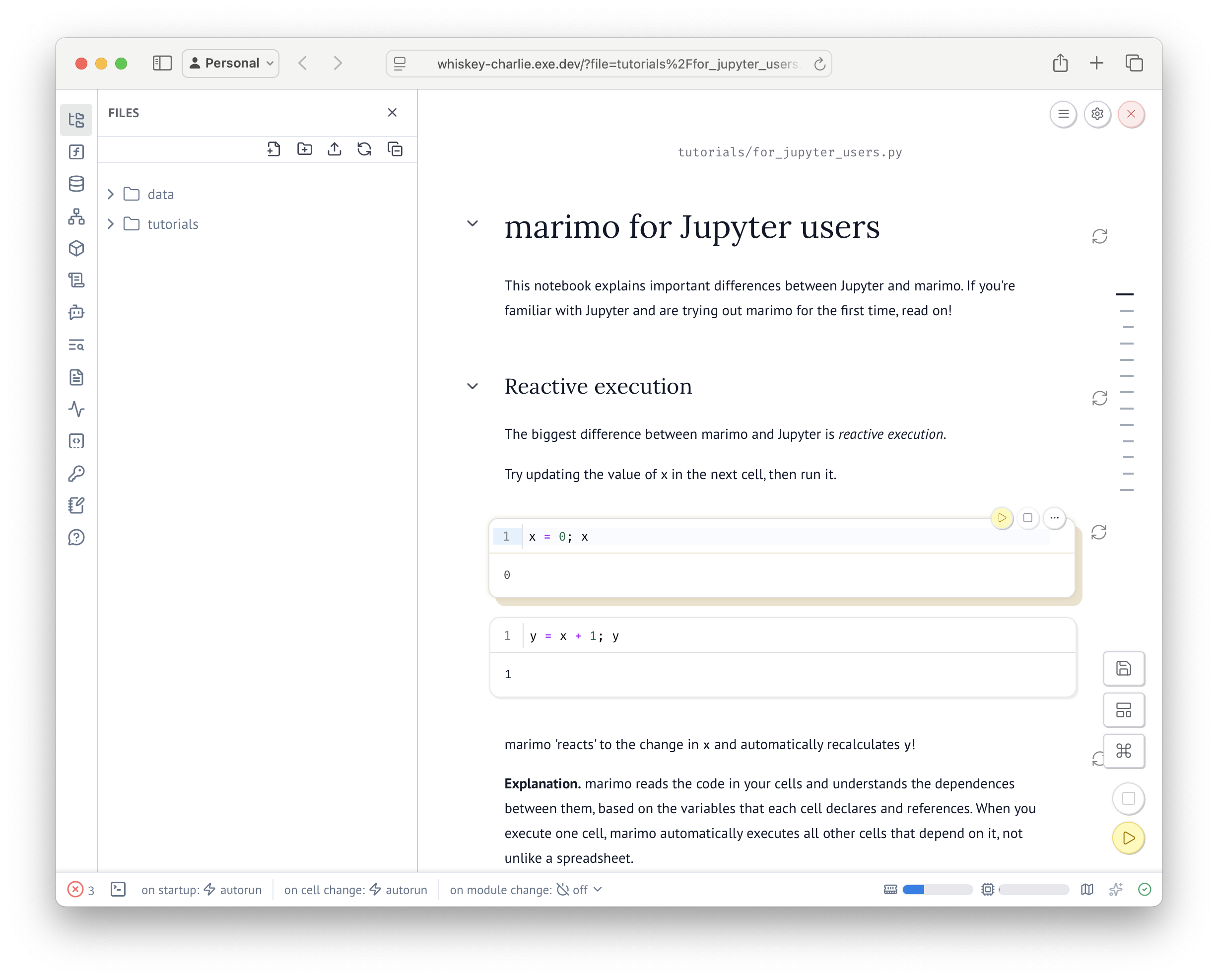 Marimo is a reactive Python notebook. To run it on exe.dev, register